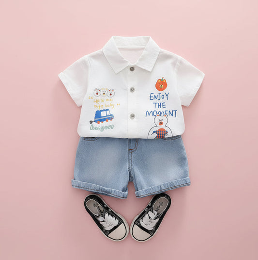 Boys Casual Summer 2 Pcs Set Denim Shorts