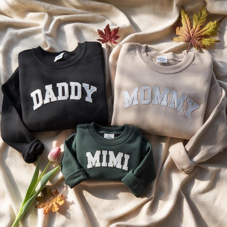 Embroidered Family Sweatshirts DADDY, MOMMY, MIMI – Toddler & Adult