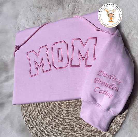 Personalized Embroidered Name Hoodie or Sweater – MOMMY, MOM, MAMA, DAD and more + Custom Sleeve name(s)