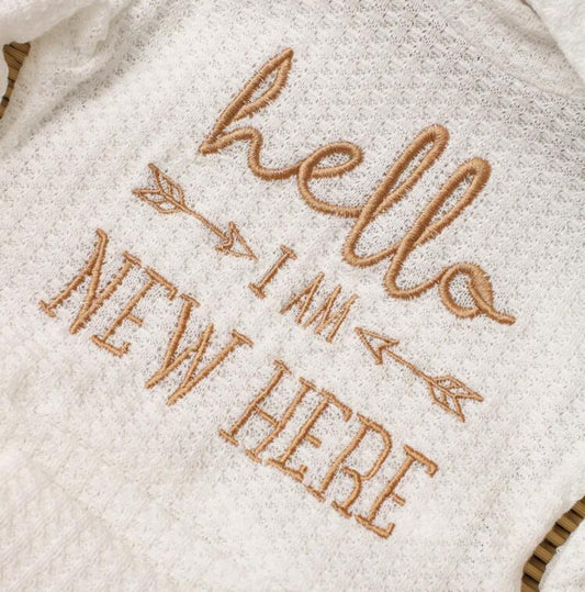 Cozy Newborn “HELLO” Embroidered 3‑Piece Newborn Photo Outfit